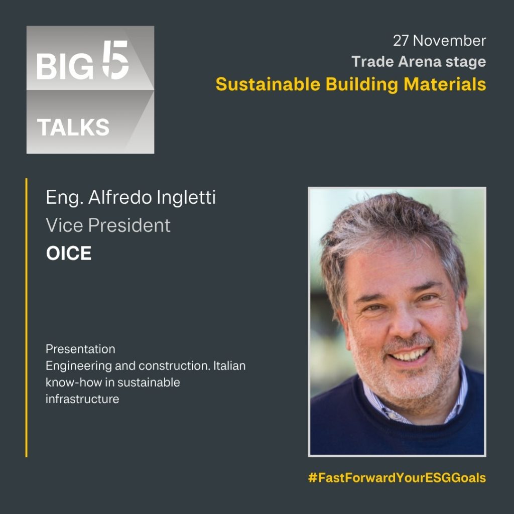 We are pleased to announce that alfredo ingletti, 𝟯𝗧𝗜 chairman, OICE Vicepresident, FIDIC – International Federation of Consulting Engineers President, will attend the Big 5 Global in Dubai, one of the leading global events dedicated to engineering, construction and urban development, held at Dubai World Trade Centre.