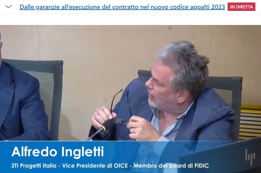 alfredo ingletti, 3TI Founding Partner and Chairman, attended the conference “DALLE GARANZIE ALL’ESECUZIONE DEL CONTRATTO NEL NUOVO CODICE APPALTI 2023, CON UNO SGUARDO AL PNRR” organized by Olimpia Cauzioni e Rischi Tecnologici Srl and Studio ALBONET (Specialisti sui Contratti Pubblici dal 1999) at the Ance Roma – Acer headquarters in Rome, showing the differences between the regulations of the Italian procurement code and those provided by FIDIC – International Federation of Consulting Engineers.