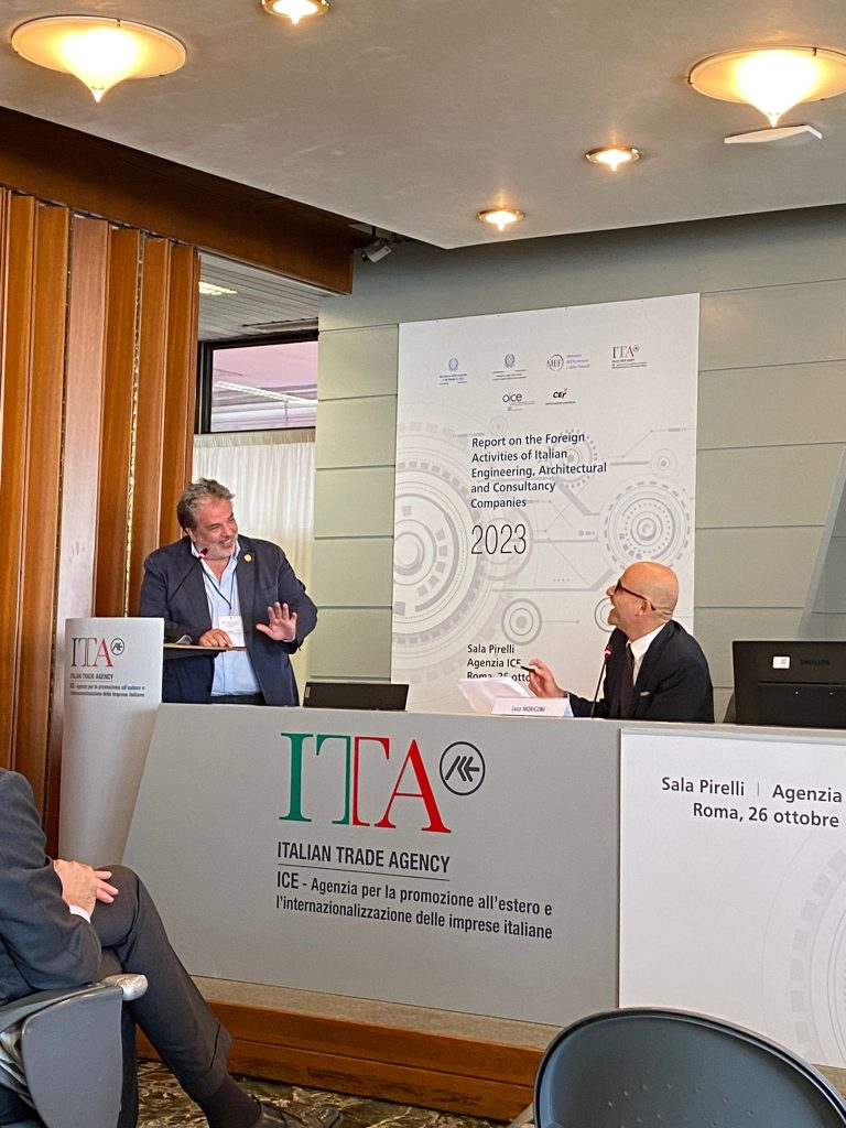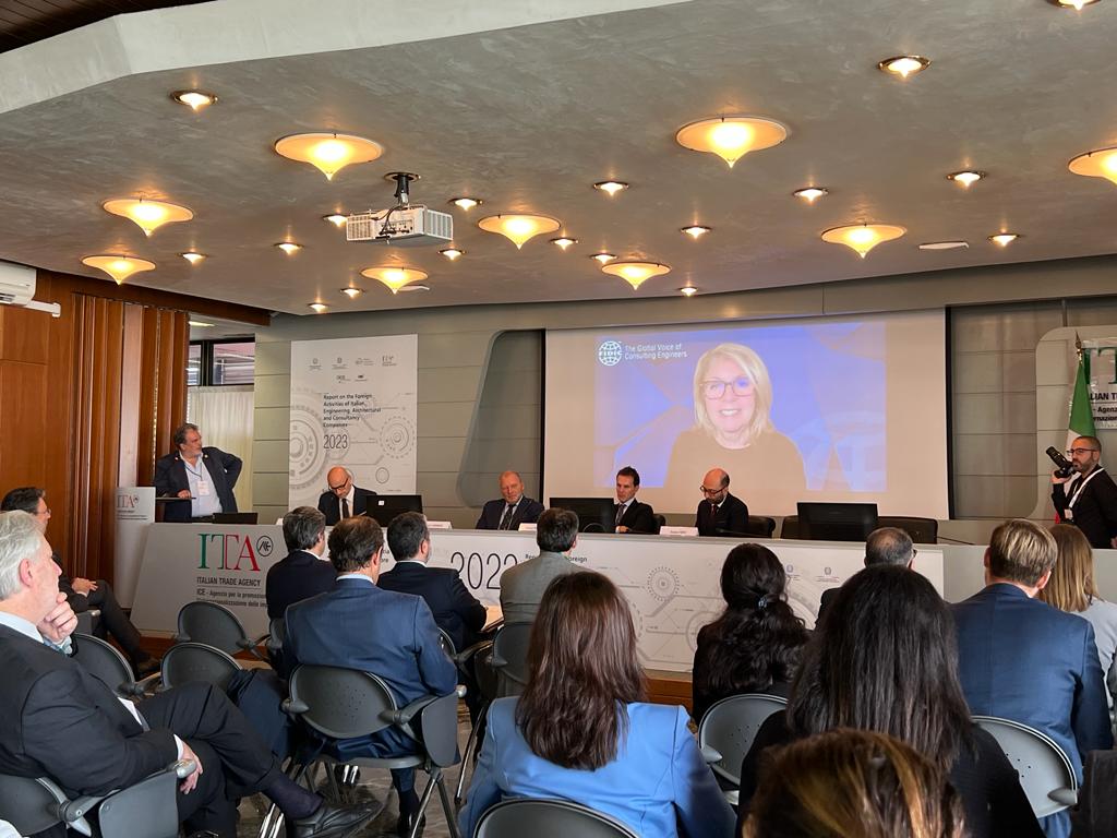alfredo ingletti, 3TI chairman, OICE Vice-President and FIDIC – International Federation of Consulting Engineers Vice-President, introduced by a video message from the new FIDIC President Catherine Karakatsanis, M.E.Sc, P.Eng., FEC, FCAE, ICD.D, participated in OICE 2023 Foreign Report – that took place today at the ICE Agency headquarters in Rome – during “The new international paradigms between geopolitical challenges and economic competition” panel discussion.