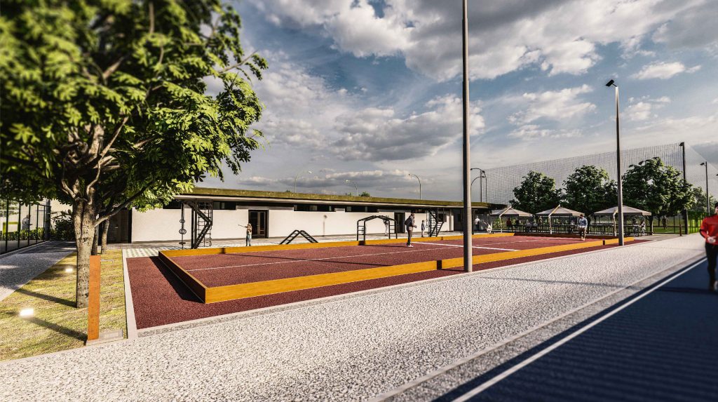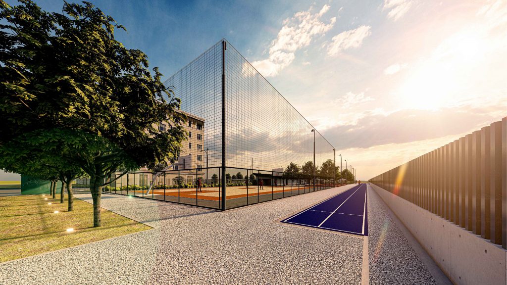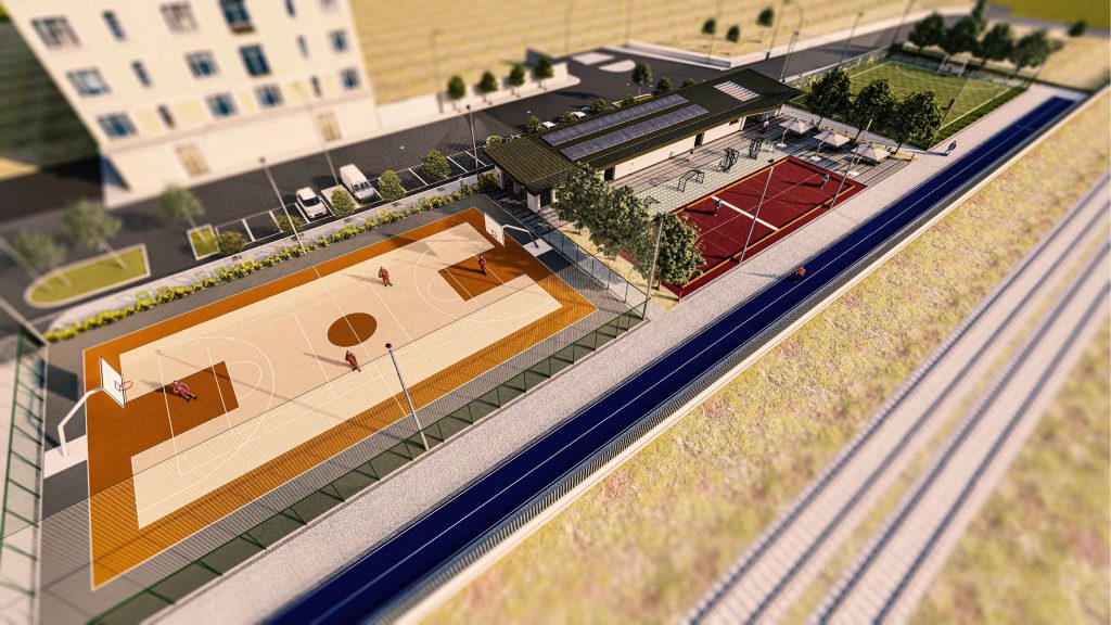 The area is meant to host equipment for non-competitive outdoor sports activities, an athletic sports facility, which main purpose is to build a space with a leisure/recreational and physical well-being purpose to serve mainly the residents of the neighborhood where outdoor sports activities can be carried out, whose use is guaranteed to users throughout the year and facilitated by a covered service facility.